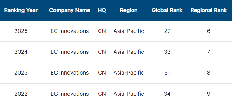 Based on verified revenue data from 2024, EC Innovations climbed five positions from the previous year, ranking 27th globally and 6th in the Asia-Pacific region. This marks the first time EC Innovations has been included in CSA Research’s Top 30 list, an important milestone that reflects EC Innovations’ significant impact and growth in this dynamic industry.