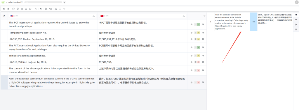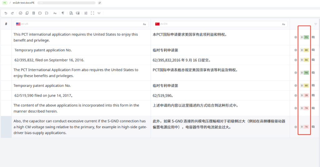 - Quick identification of quality problems: The system has a built-in QE feature, which can automatically identify sentence segments with low translation quality and assist in targeted proofreading.