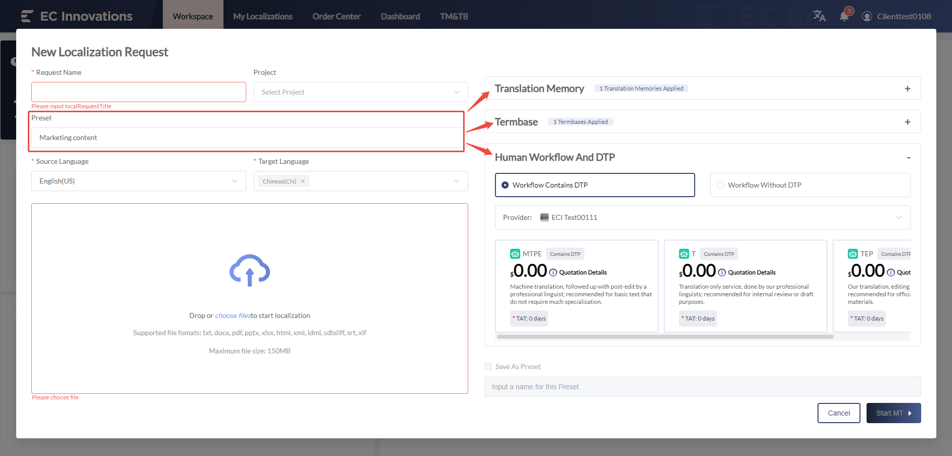 (Demonstration of quickly creating an MTPE project process – ECI Link)