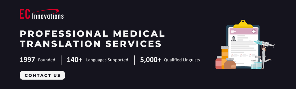 At EC Innovations, we understand the complexities and critical importance of medical document translation. Our team of experienced medical translators is dedicated to providing accurate, reliable, and high-quality translations. With rigorous quality control processes and a deep understanding of medical terminology and industry standards, we ensure that your medical documents are translated with the utmost precision and care. Contact us today to get a free quote for your medical translation project!