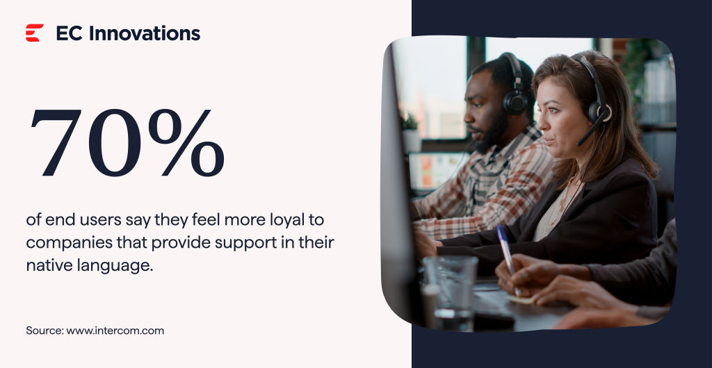 - Increased Customer Loyalty: Providing support in your customers’ native language can greatly enhance their loyalty to your brand. 70% of end users say they feel more loyal to companies that provide support in their native language. When customers feel understood and valued, they are more likely to stick with your brand, even when competitors offer similar products or services.