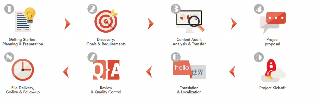 We strongly believe that no two clients are the same and that the solutions we put forward should reflect that. In regards to technology, we take a consultative approach to scoping, mapping, and executing our client’s website translation and localization projects. That being said, there are also some general methodologies that we apply to each website translation project that allow us to guarantee success.